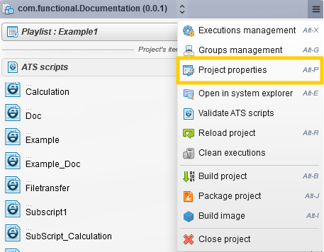 Ils peuvent également être gérés dans le menu "Propriétés du projet".