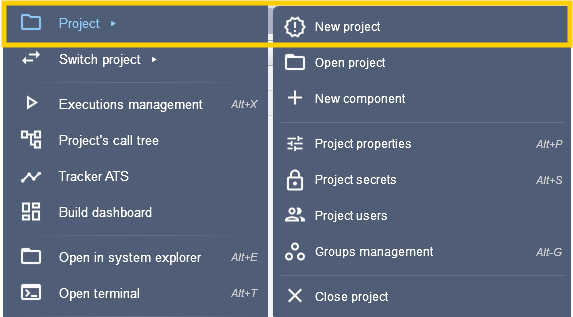 En haut à gauche de l'éditeur Agilitest, cliquez sur Projet > Nouveau projet