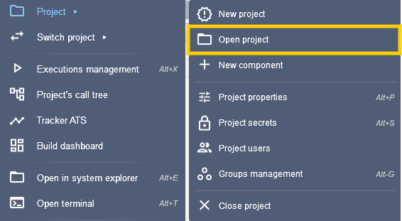 Si vous avez déjà des projets existants mais qu'ils n'apparaissent pas dans l'explorateur de projets, vous devez les ouvrir via Agilitest.