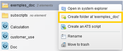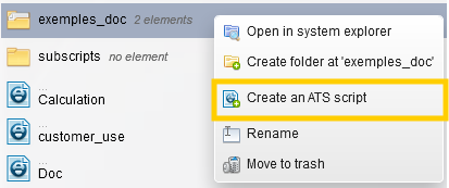 Pour créer un script dans un dossier, vous pouvez faire un clic droit sur le dossier > " Créer un script ATS ".Créer un script ATS "