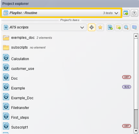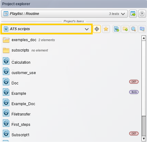 - Vue des scriptsATS : Pour afficher uniquement les scripts ATS de vos tests et leur référentiel au sein d'un même projet.