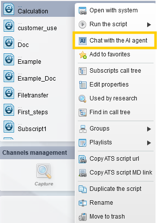 Cliquez avec le bouton droit sur un script et sélectionnez «Discuter avec un agent IA»