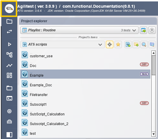 Affichez l'interface de l'éditeur Agilitest en haut à gauche de votre éditeur.