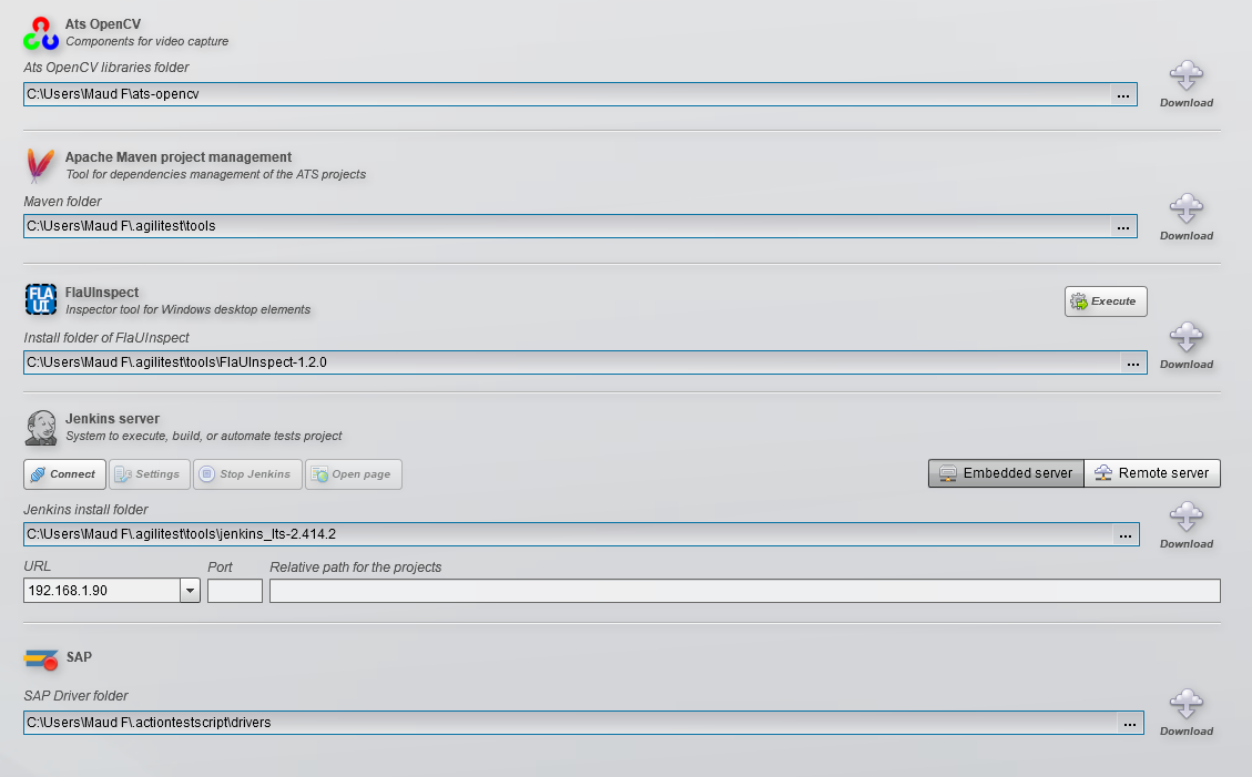 Par défaut, Agilitest affichera une icône d'erreur s'ils ne sont pas téléchargés. Il est recommandé de les télécharger tous lors de l'installation pour qu'ils soient accessibles.