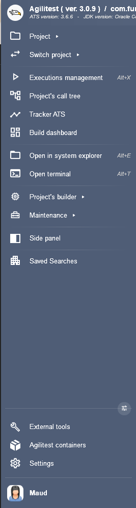 Pour configurer votre JDK, vous pouvez le faire à partir du menu des paramètres situé en bas à gauche de la barre latérale dans Agilitest.