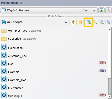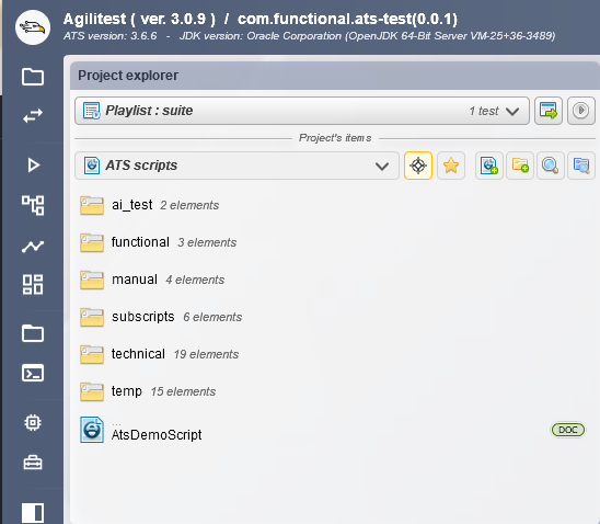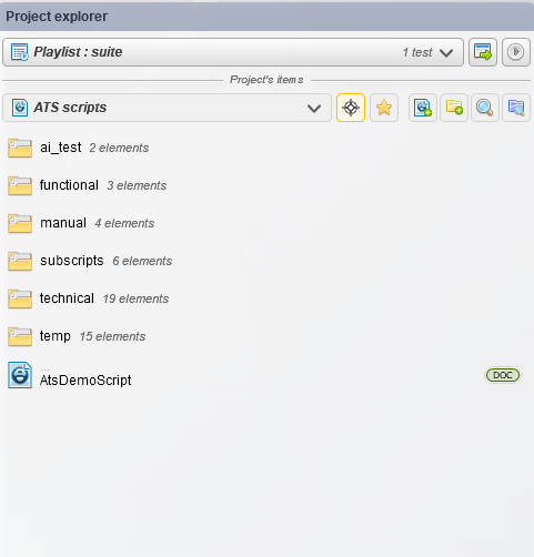 Note: Les scripts Agilitest sont des fichiers ActionTestScript (ats). Vous pouvez créer des sous-répertoires pour mieux classer vos projets. Vous pouvez également créer des sous-scripts, qui n'ont aucune différence avec les scripts, les deux sont des fichiers ats , seul l 'un est appelé par l'autre.
