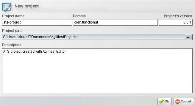 Lorsque vous créez un nouveau projet, un répertoire"AgilitestProjects" est créé dans lequel tous vos projets sont automatiquement placés.
