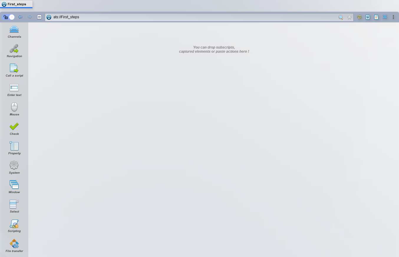 Saisissez le nom de votre script. Cela ouvrira une fenêtre correspondant aux interprétations graphiques des actions qui seront effectuées sur votre script. Le format ATS est un format textuel qui décrit toutes les actions.