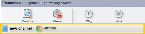 Sur l'interface Agilitest, l'ouverture du canal sera indiquée par sa présence dans la zone de gestion des canaux avec une ligne qui apparaît avec le nom donné au canal.
